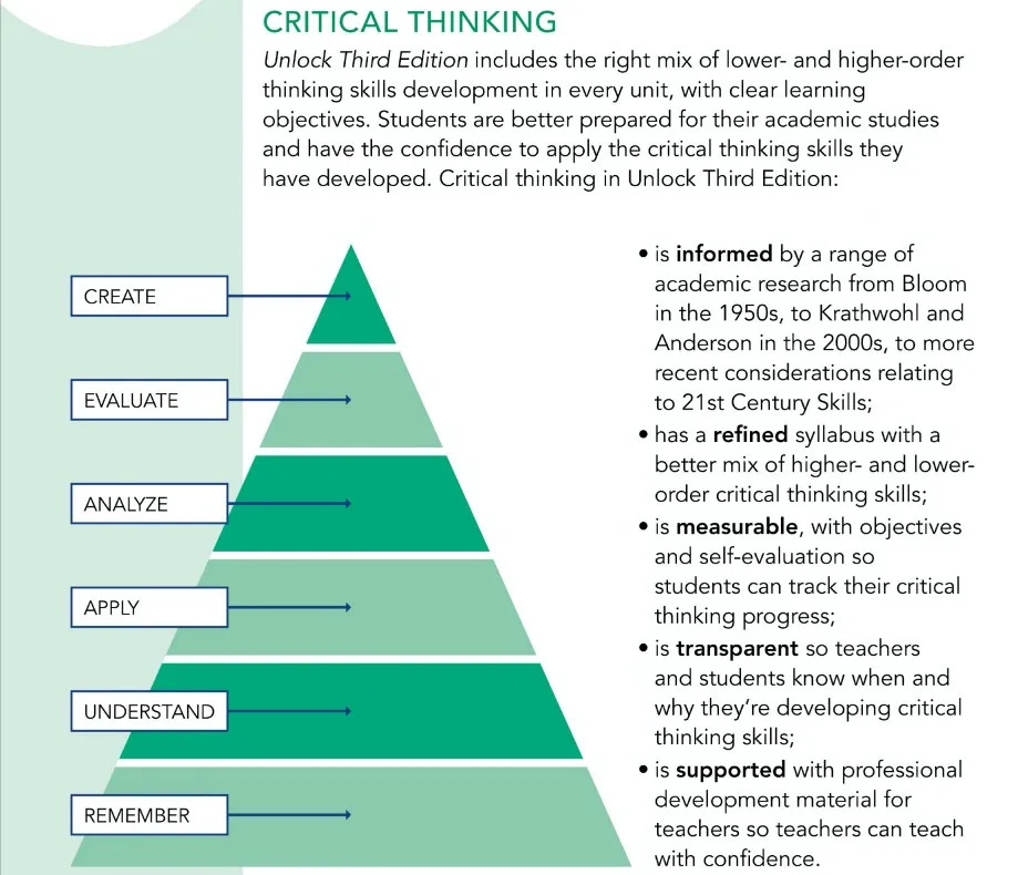 The Academic Literacy programme is built around the Cambridge Unlock (3rd Edition), which develops critical thinking skills and essential academic language for university success from the very first lesson.